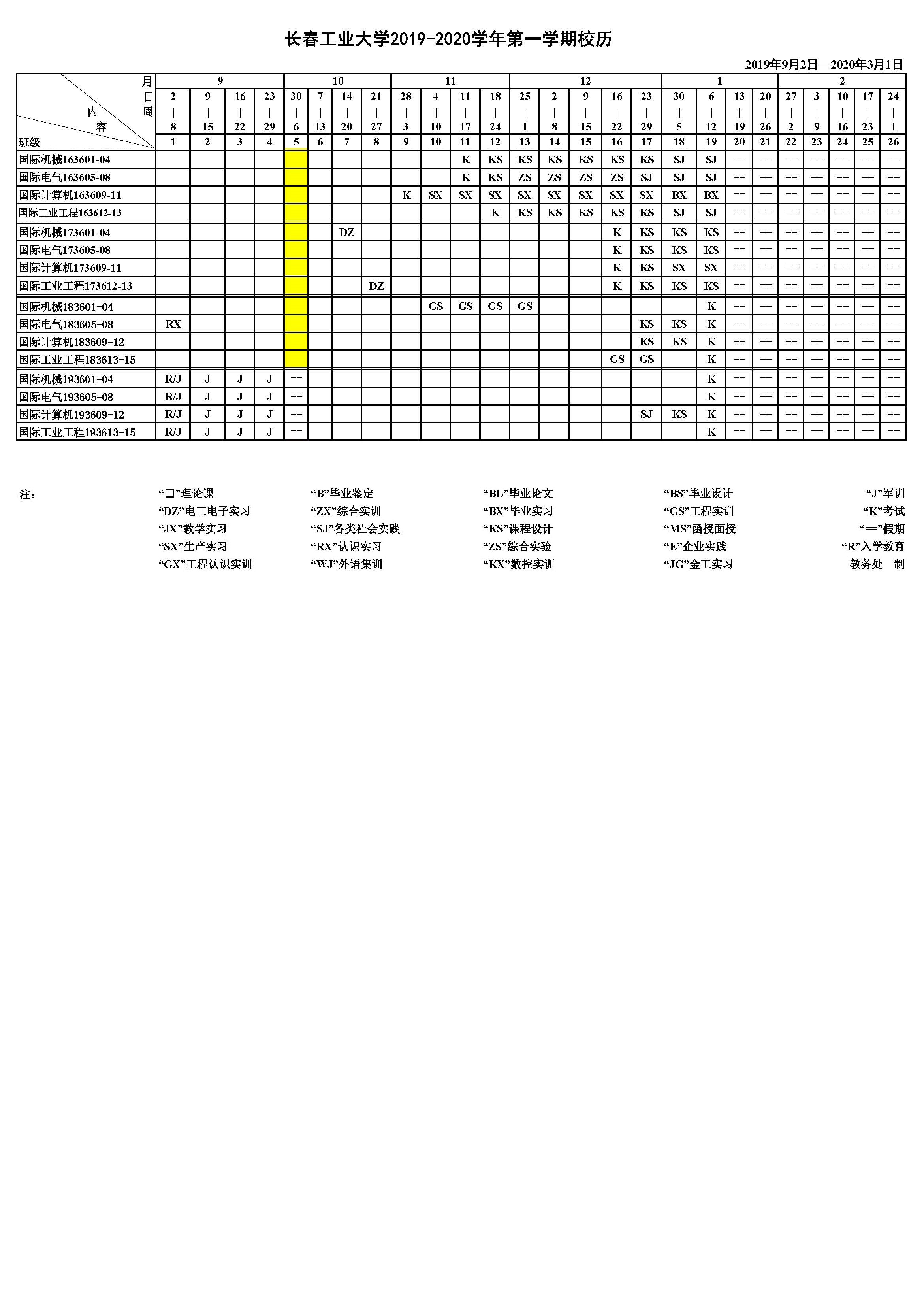 2019-2020学年第一学期校历
