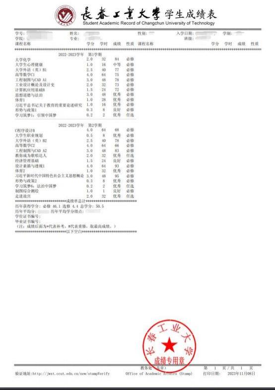 7.预览后修得所有成绩,成绩单即体现。