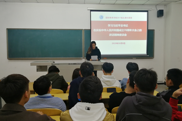 党总支组织师生党员、团员青年收看收听了大会直播盛况。习近平总书记的重要讲话在全体师生中引起热烈反响。国庆假期后,学院团委、各学生团支部以及美国奥克兰大学、波特兰州立大学海外团支部相继组织开展了学习习近平总书记重要讲话精神座谈会。