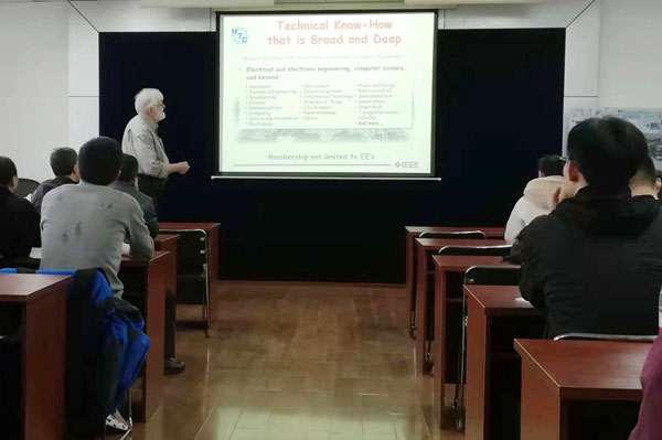 、电气与电子工程学院和计算机科学与工程学院的师生做了精彩的报告,报告题目分别为:《IEEE:志愿者的使命、愿景和角色》以及《纳米封装领域探讨》。h视频