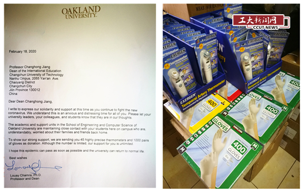 目前学校疫情防控物资紧缺,美国奥克兰大学工程和计算机科学学院捐赠的防疫物资解决了h视频