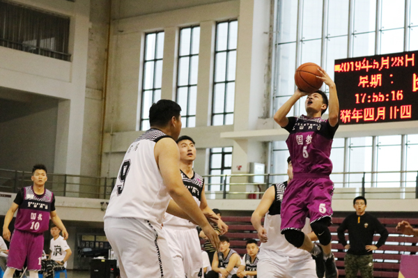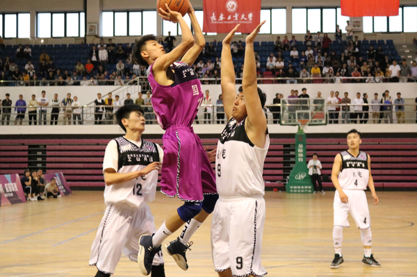 校党委副书记李雁冰为总决赛开球。伴随着哨声的响起,双方很快进入了激烈角逐,第一节比赛中,身着紫色队服的h视频