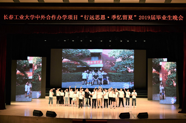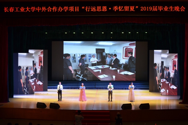 中外合作办学项目“行远思恩,季忆留夏”2019届毕业生晚会在这里隆重举行。校党委书记王忠、副校长李占国、党委副书记李雁冰,美国奥克兰大学盖瑞·巴博尔教授、美国波特兰州立大学李斧教授,校党委学生工作部、团委负责人,合作项目教学培养单位党政负责人、系主任应邀出席。h视频