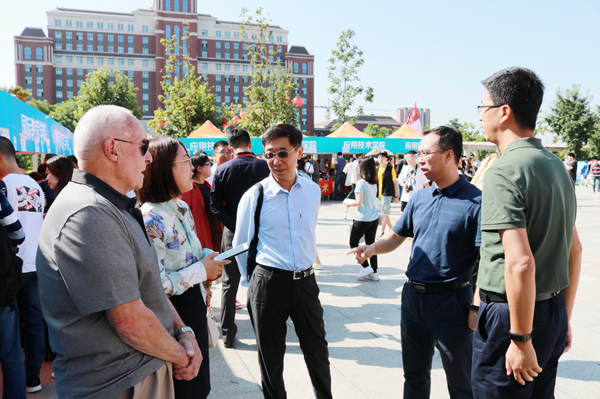 迎新当天,学校领导、党委常委及相关部门负责人到迎新现场指导迎新工作。学院党总支书记胡刃锋、院长姜长泓向党委书记王忠、校长张会轩详细介绍了迎新准备工作及新生报到情况。领导们还与到访的美国波特兰州立大学人员合影留念。