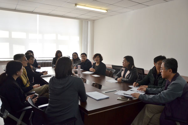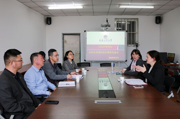 中外合作办学项目授课教师、外国语学院教师代表接待了代表团。双方就合作办学项目运行近况进行了汇报交流。