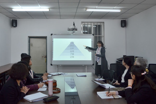 远程视频会议室,双方共同举办了“以学习者为中心的课堂教学及写作课程目标”教学专题研讨会,与会人员就课堂教学经验以及如何育人、育什么样人等问题进行了充分交流。
