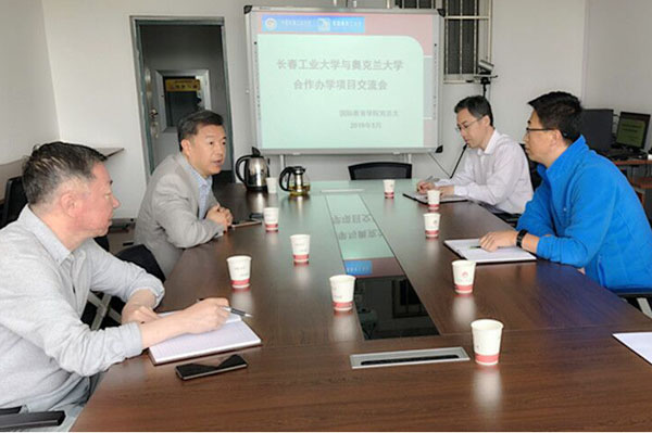 本网讯(通讯员 阎烁)5月10日,美国奥克兰大学工程与计算机科学学院院长特别助理杨连祥来校,与h视频 院长姜长泓,副院长逄焕利、崔高健,就中外合作办学项目开展情况进行座谈交流。