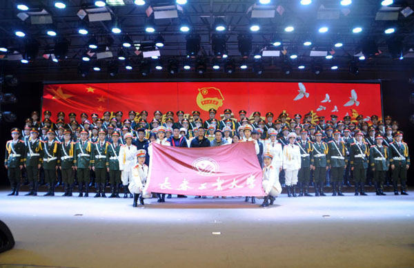 演出前受现场合唱台的搭建限制,带队的学生干部立即对合唱队形和表演动作进行了重新编排和加紧指导;合唱队员们听从指挥,熟记每一个被临时修改过的动作和造型,利用化妆空隙反复练习,大家相互鼓励,振奋士气,在最终的演出中做到了零失误的完美呈现,以一曲气势豪迈的《好男人就是要当兵》展示出了工大青年、国教学子势不可当、昂扬向上的精神面貌,学院被授予“优秀组织奖”。