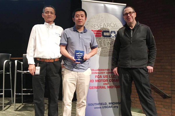 留学生王炳旭同学荣获美国汽车研究委员会研究伙伴奖,该奖项是由美国汽车研究委员会(USCAR)向在相关研究项目中产生重大影响的外部合作者颁发的荣誉。