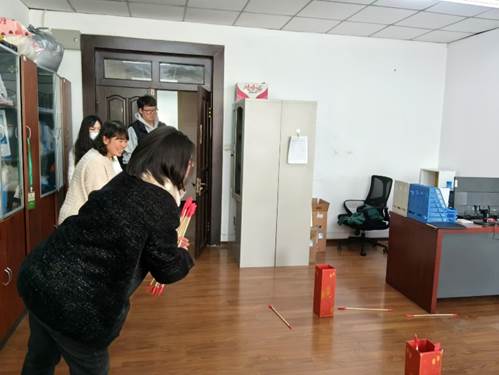 在南湖校区学生工作办公室开展了一场别开生面的趣味投壶活动,学院全体教职工均积极参与。
